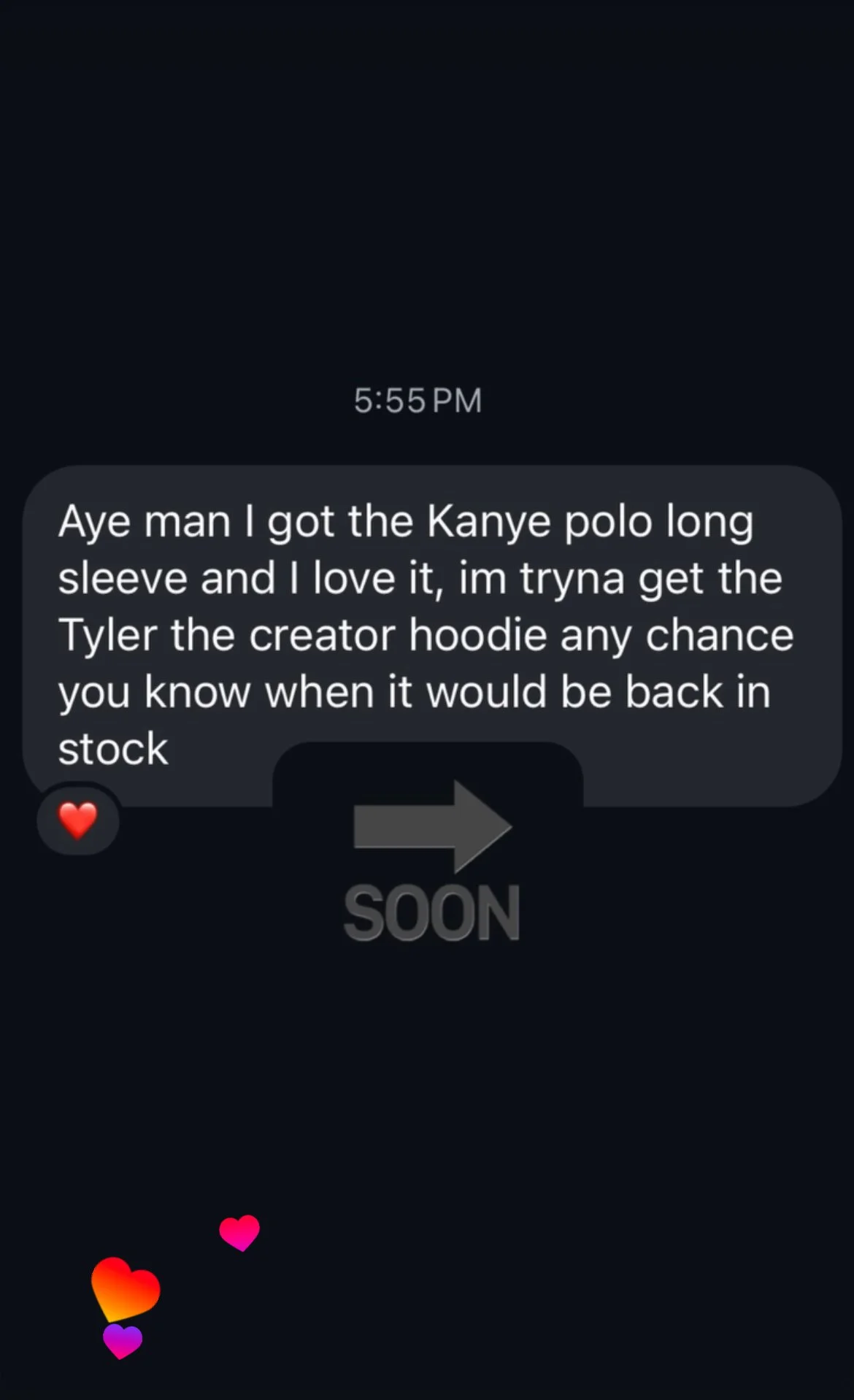 “Nice, imma cop one, really like your stuff man keep pushing 🙌”