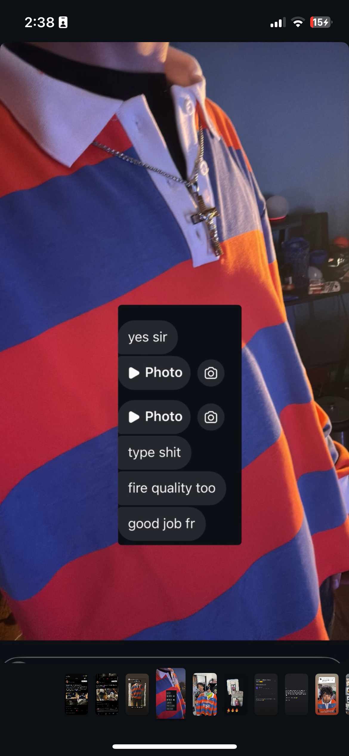 “this shirt got me hoeless to now having all the hoes..blessed me up fr”
